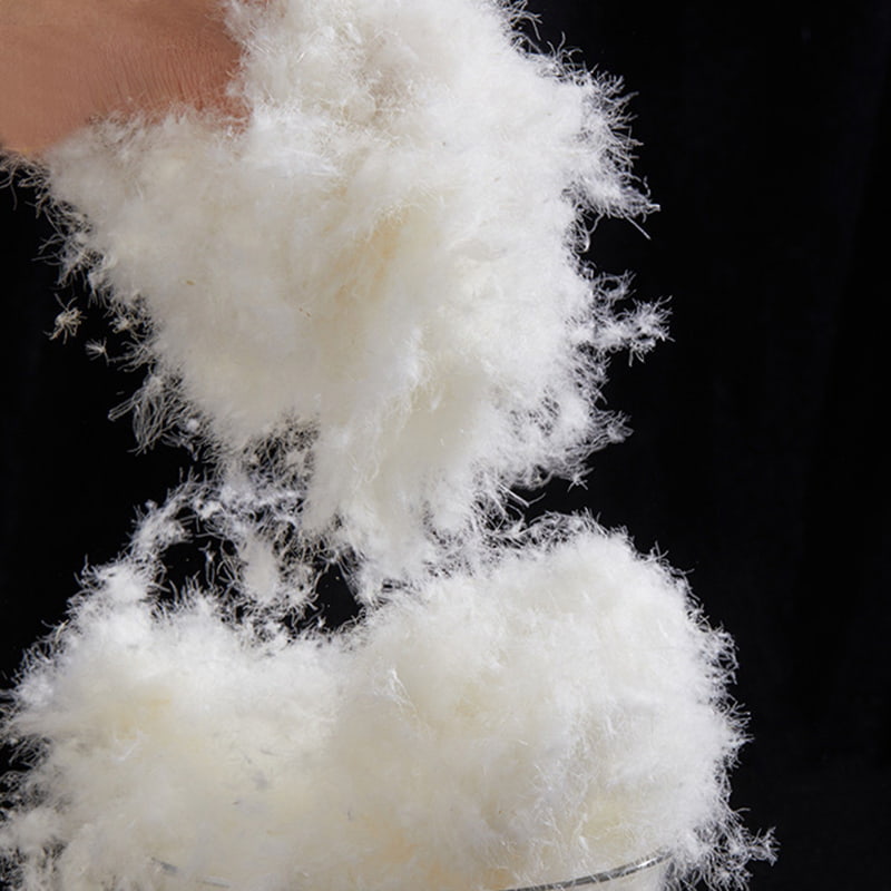 Dipilih dari bagian alami penghasil bulu bebek seperti perut, leher dan sayap, bagian bawahnya berbentuk buluh buluh halus, terasa lembut dan halus seperti awan; dilengkapi dengan bulu-bulu bersisik dengan proporsi yang tepat, ia membentuk matriks pengunci suhu dua lapis. Sebagai serat hewani alami, struktur bulu halus yang berbentuk bola ditutupi dengan ratusan juta pori-pori mikro segitiga, yang membangun siklus pernapasan yang cerdas. Saat suhu tubuh meningkat, serat secara alami meregang untuk melepaskan panas, dan saat lingkungan menjadi dingin, serat menyusut rapat untuk mengunci kehangatan. Meskipun secara efisien mendaur ulang panas yang hilang dari tubuh manusia, sistem ini mengisolasi serbuan udara dingin dari dunia luar dan mencapai perlindungan suhu konstan 24 jam. Ringan dan tidak terlihat, pas di tubuh seperti lapisan kedua kulit, membuat kehangatan dan kenyamanan terasa mulus.